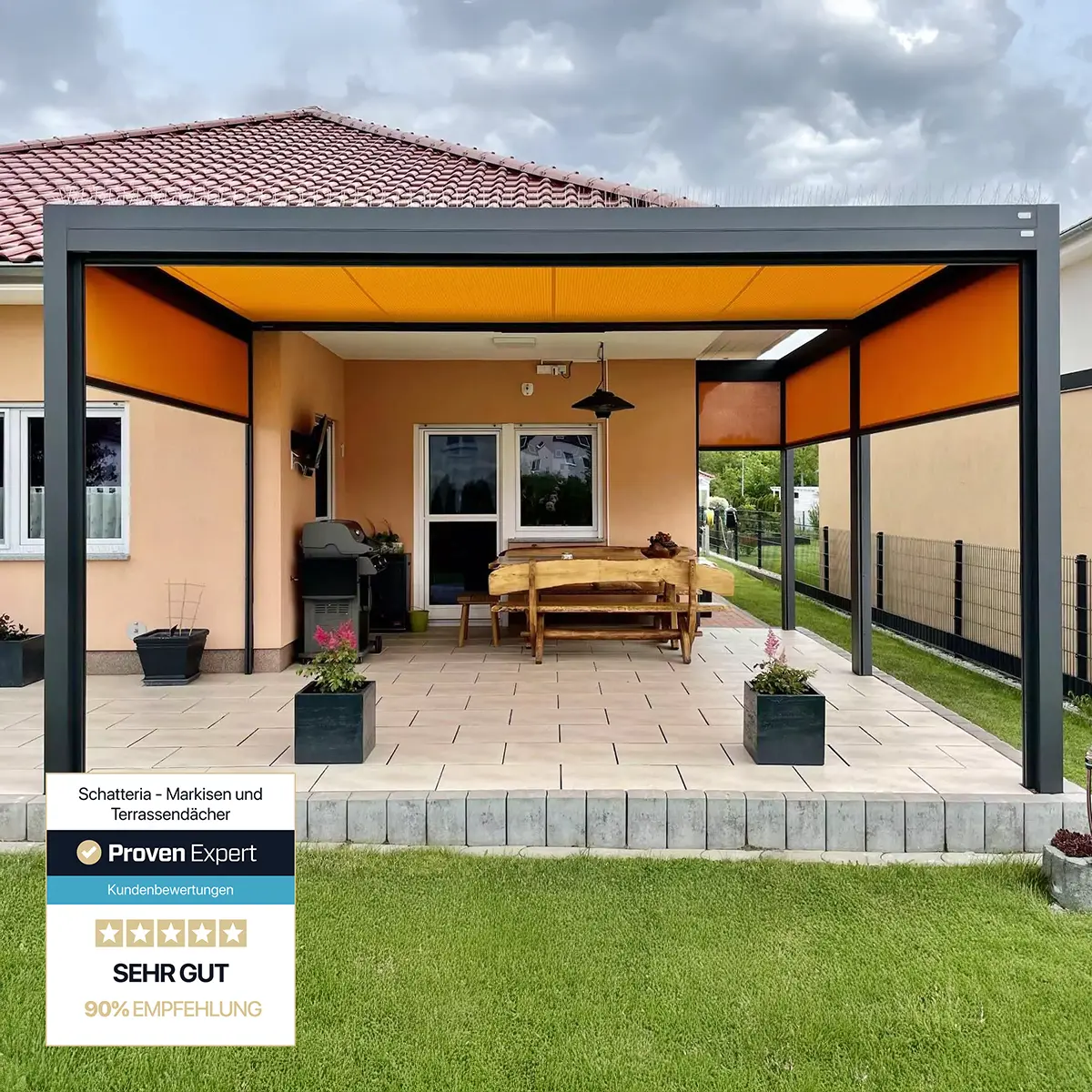 Ich bin sehr froh, daß ich durch meinen Schwiegersohn auf die Firma Schatteria aufmerksam gemacht worden war. Sie haben tolle Produkte, um sich seine Terrasse stilvoll und funktionell zu überdachen. Die Beratung vor Ort in Dresden war sehr gut, die Monteure bei der Montage sehr freundlich und kompetent. Ich habe es bis heute nicht bereut, mich für eine Markise vom Typ „QBus“ entschieden zu haben.