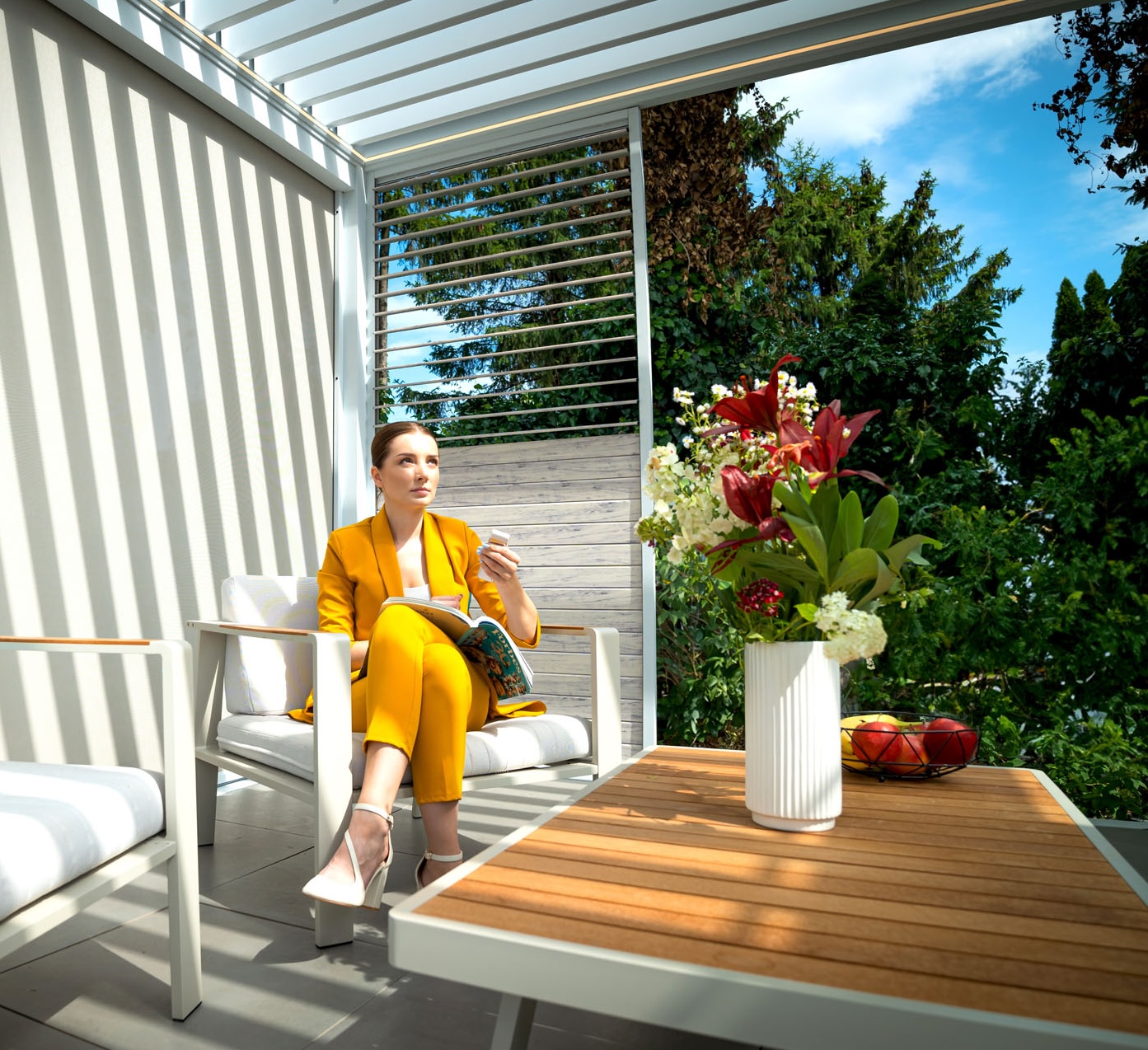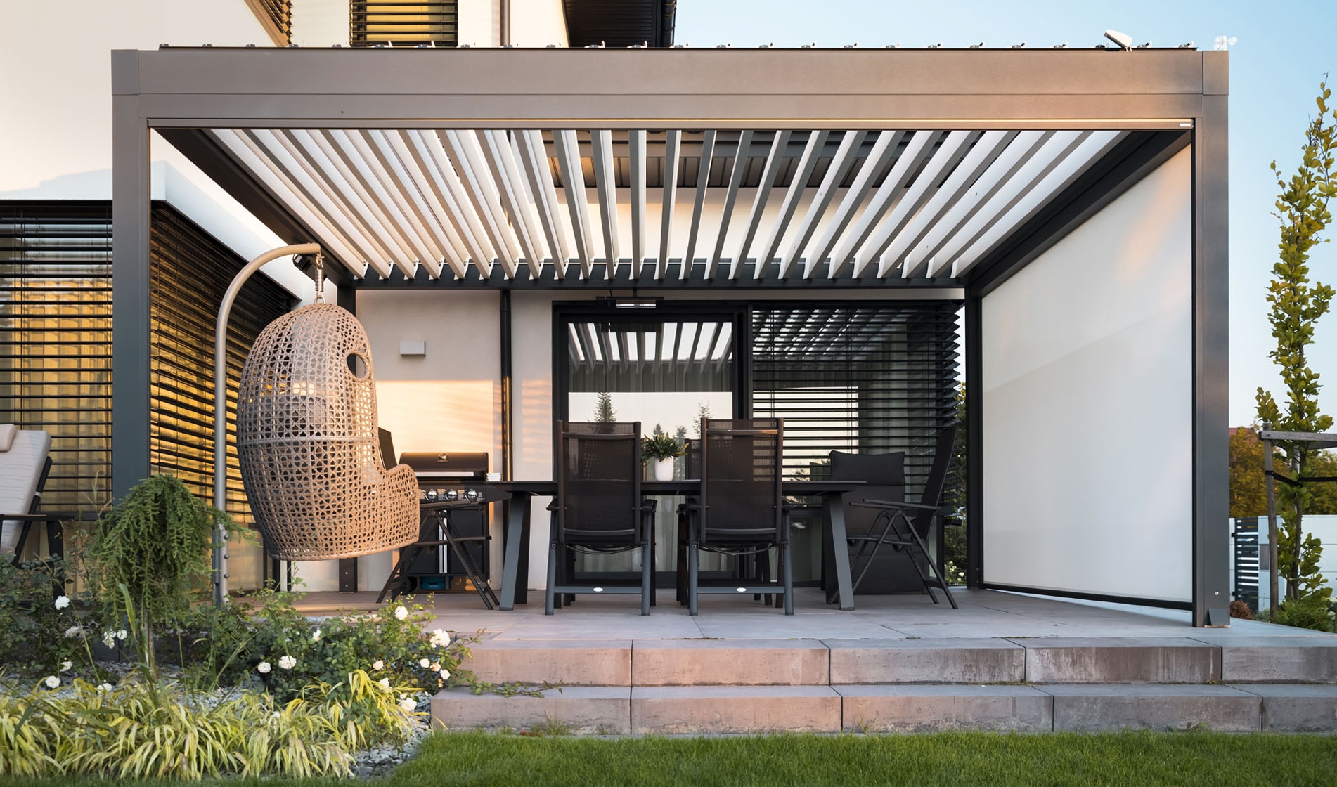 Das Lamellendach Essential ist eine elegante und funktionale Lösung für den Outdoor-Bereich, die sich durch ihr minimalistisches Design und ihre herausragende Qualität auszeichnet.