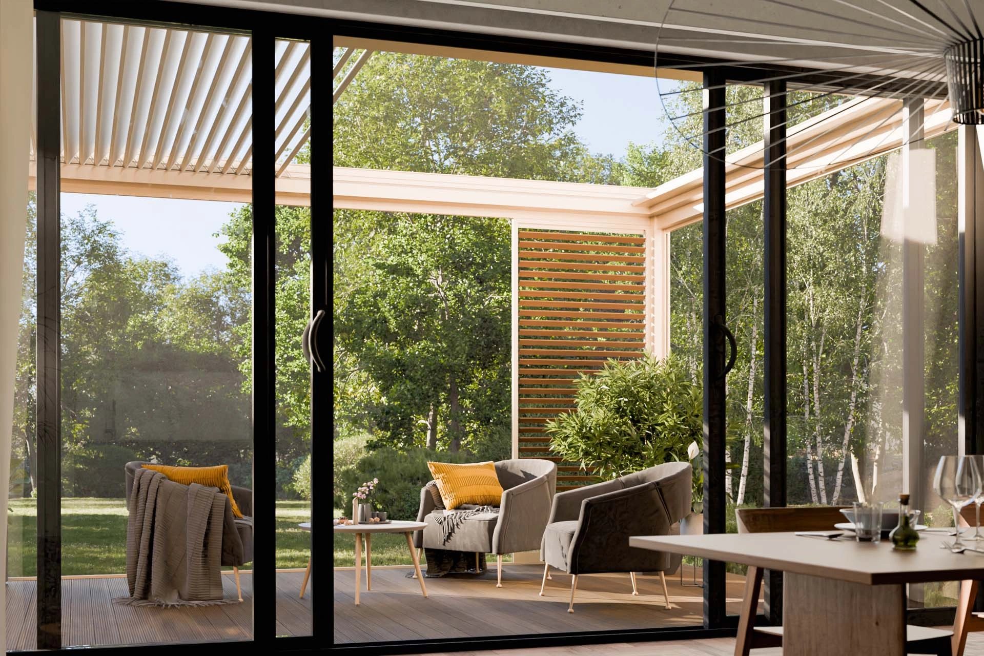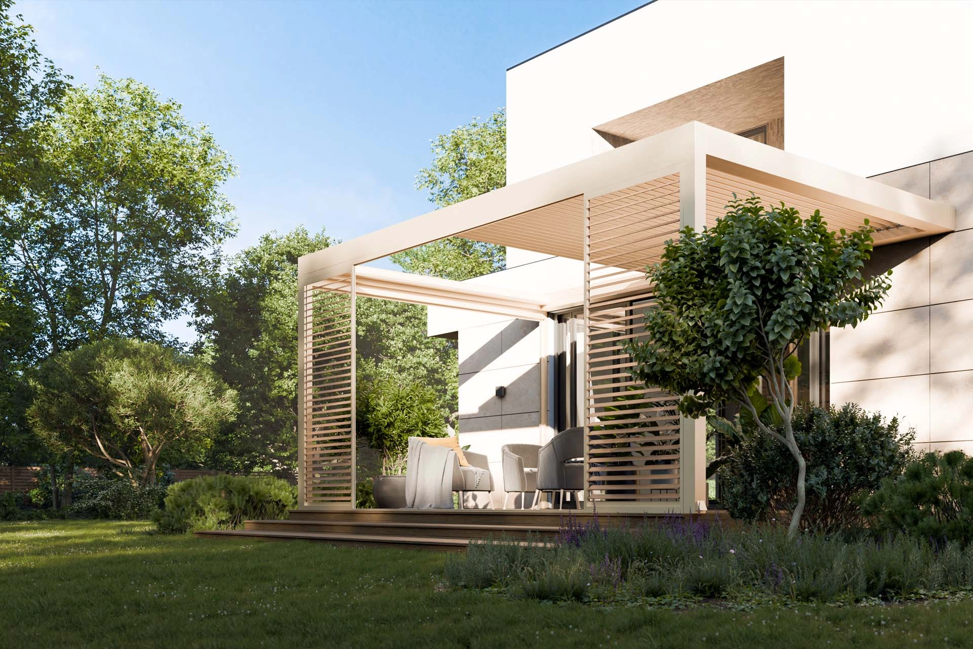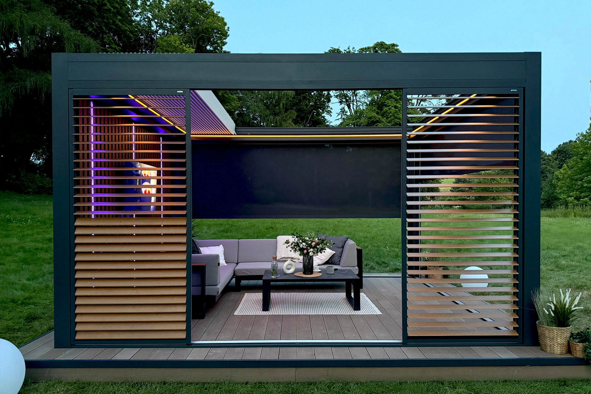 Erleben Sie maximale Freiheit auf Ihrer Terrasse:Mit dem verschiebbaren Lamellendach Technic View öffnen Sie Ihr Dach vollständig – für ein echtes Open-Air-Gefühl auf Knopfdruck.