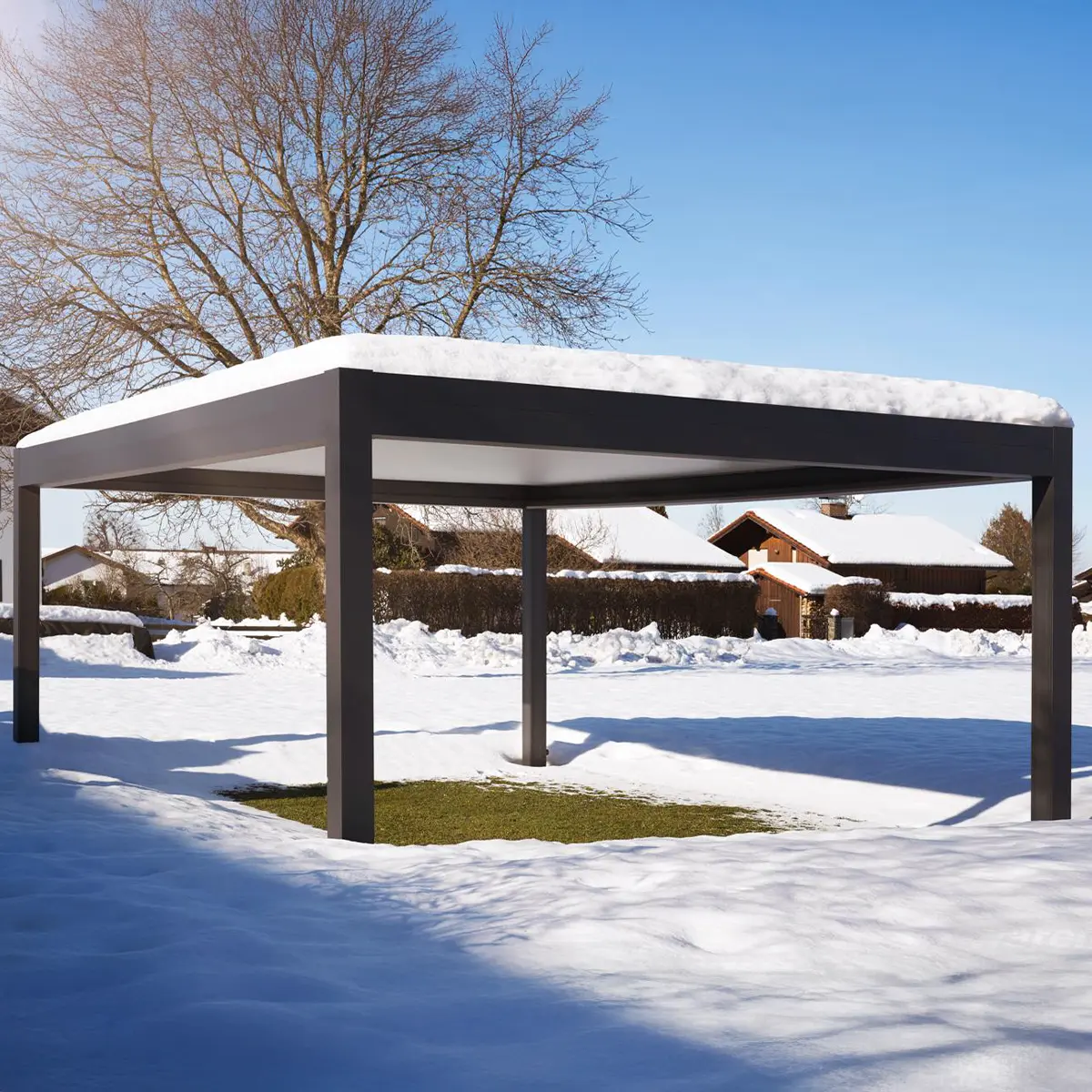 Lamaxa L60 wird in Deutschland entwickelt und gebaut. Damit genügt es höchsten Qualitätsstandards – auch bei schwierigen Witterungsbedingungen. In der größten Abmessung trägt das Lamellendach bis zu 50kg Schneelast pro m². Selbst größte Windlasten von 1,1 kn/m² können dem Lamellendach nicht schaden.