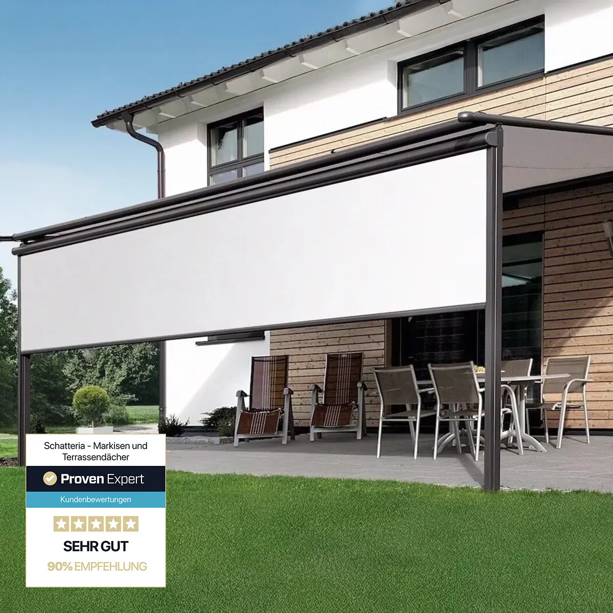 Pergolamarkise Fame mit integrierter Senkrechtmarkise für mehr Sonnenschutz und Sichtschutz